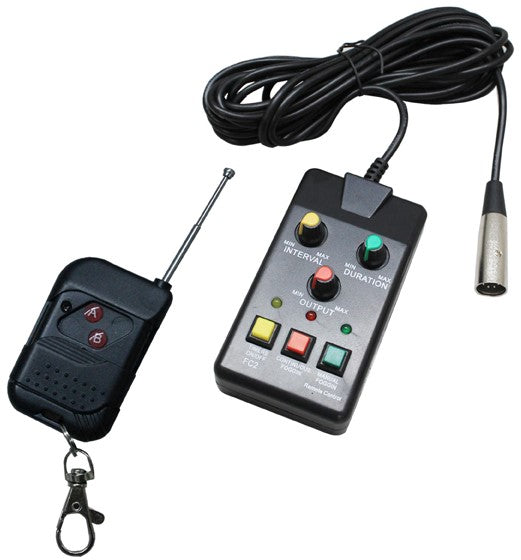 - Fog machine with wired remote control and fog juice included