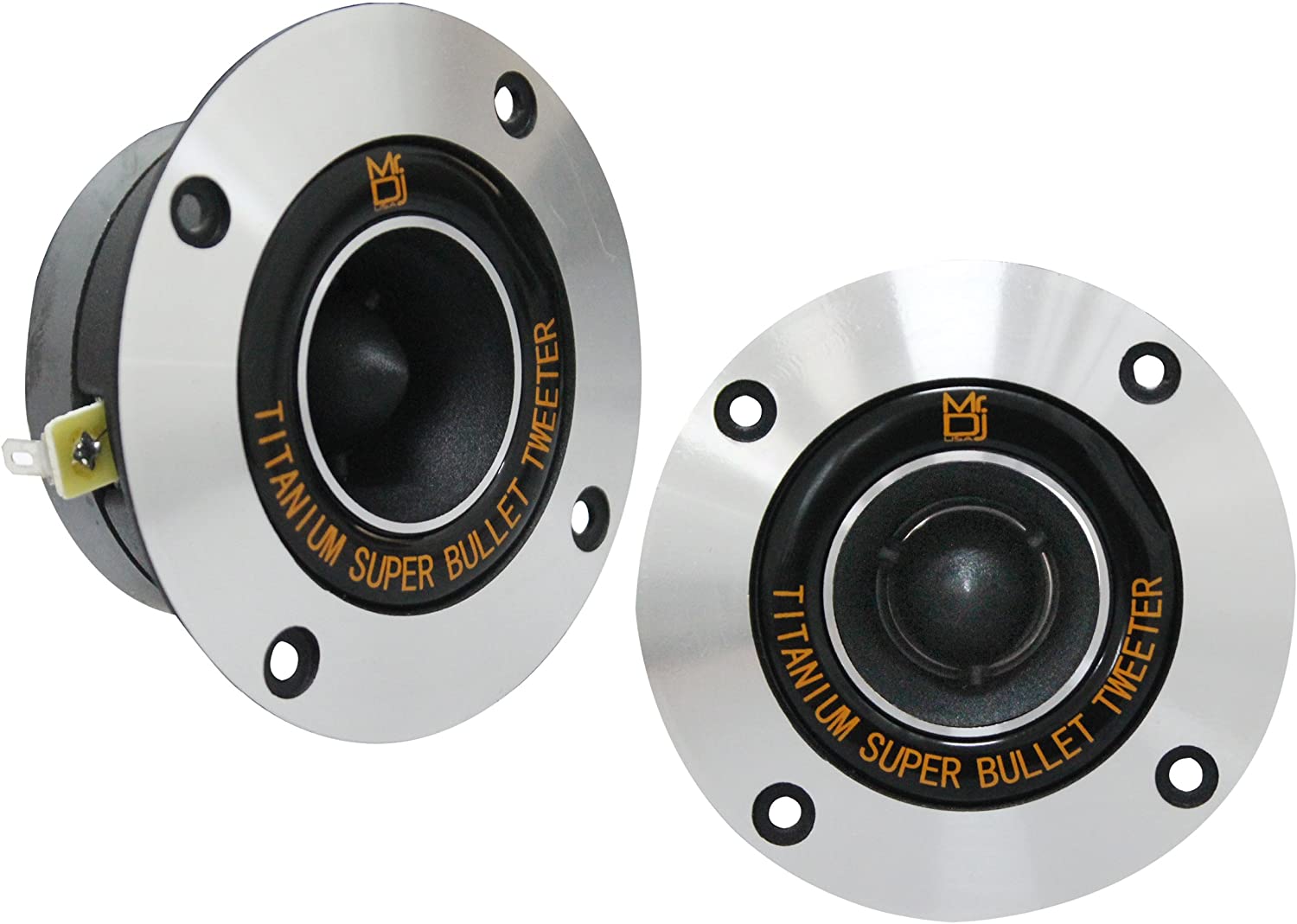 Engineered and designed in the USA by MR DJ USA engineers, the HDT800B 400 Watt 1. 75-inch high compression aluminum bullet tweeters are the perfect addition to help get the most out of your music. Sold as a set of 2, these super tweeters are designed to perfectly incorporate into a pro audio style system and provide a clean high-frequency response. these bullet-style super tweeters are so powerful you might think you're in a concert hall when hearing them for the first time. It doesn't stop there however, the accuracy of the high frequencies reproduced by these tweeters is unparalleled, making them the top choice among audio enthusiasts.