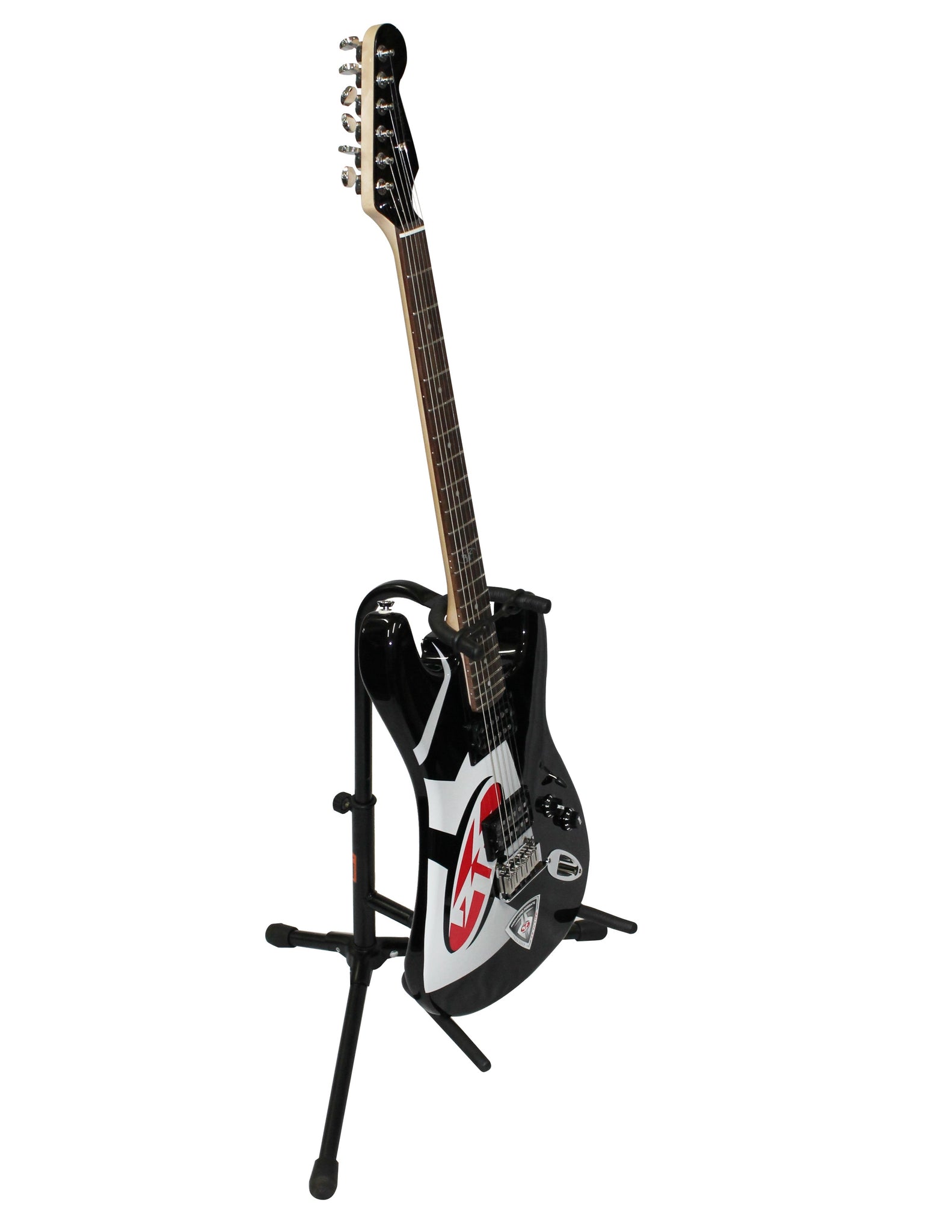 Made to exacting specifications, this guitar stand features finish-safe soft black neoprene rubber tubing to protect your guitars. It folds up for easy transport and includes a locking strap so you can walk away worry-free. This stand holds one guitar or bass. It is not for nitrocellulose-finish guitars. It is reliable, strong, and sturdy yet lightweight.
