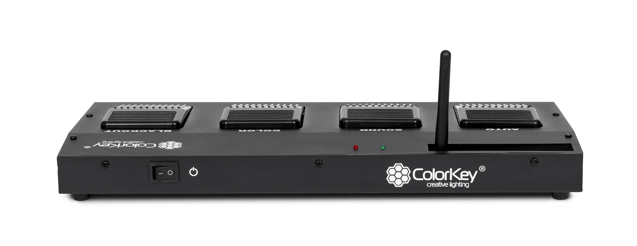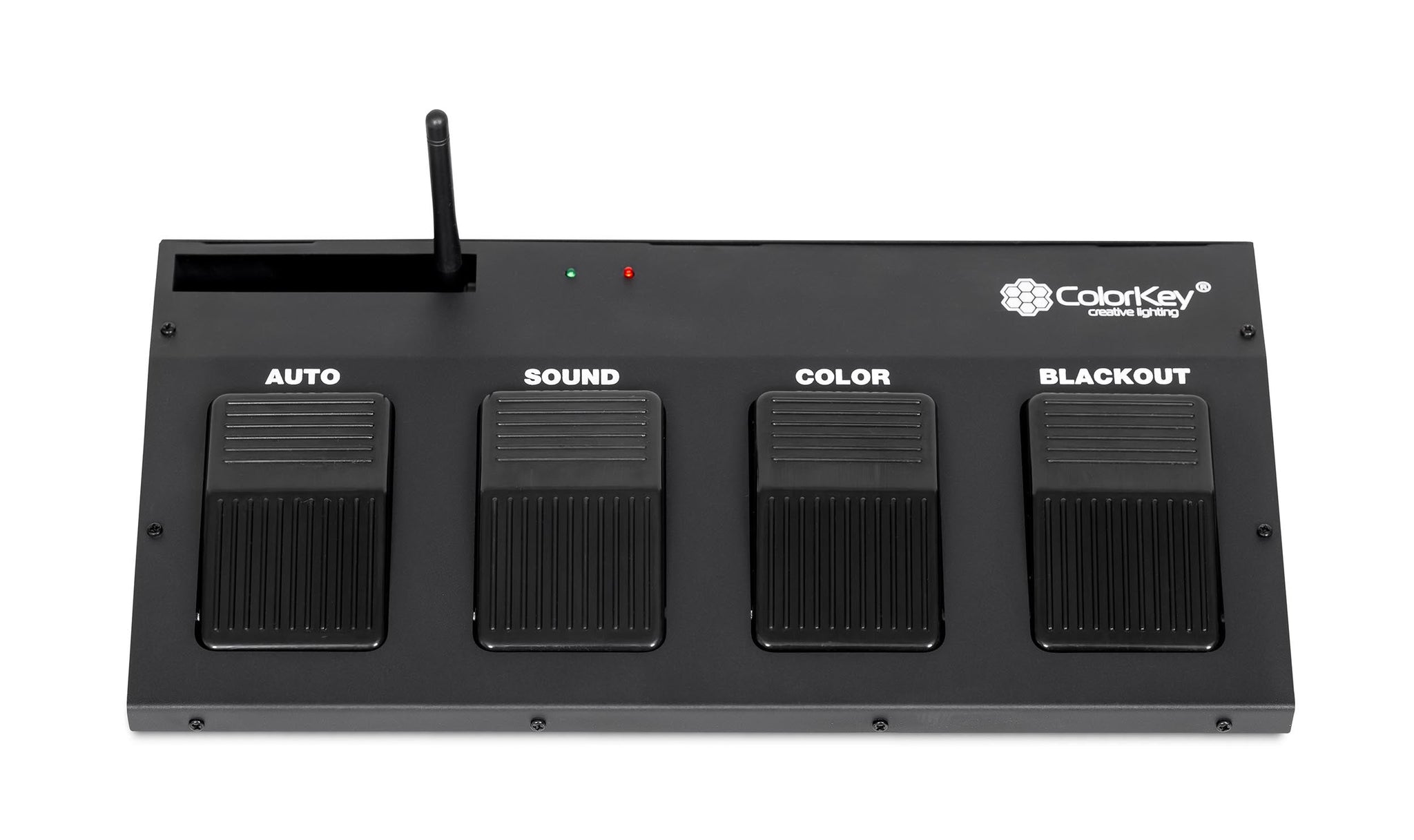Take charge of your lighting experience with the ColorKey Wireless Footswitch Controller. This four-button footswitch puts control at your feet for the ColorKey PartyBar Mobile 150, PartyBar Mobile 250, and PartyBar Pro 1000.