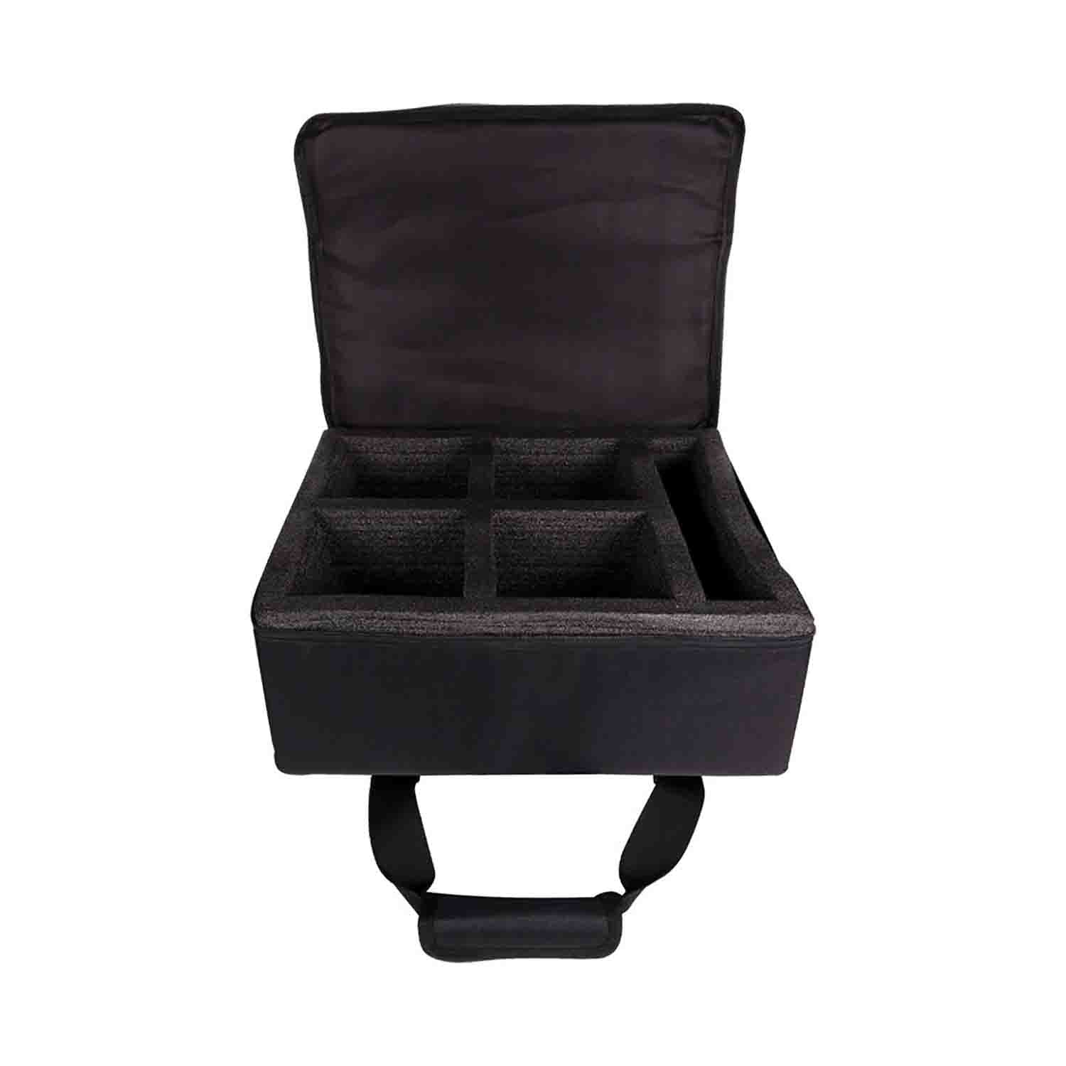 The ColorKey CKU-9020 Fits 4-units of the ColorKey MobilePar Mini Hex 4 in a convenient padded carrying case. Also includes an interior side compartment and exterior zippered pocket for charging cables, IR remotes and DMX connectors. This bag lets you effortlessly transport more sets of lights to your events for maximum coverage- all while keeping your gear safe and secure for your next show.